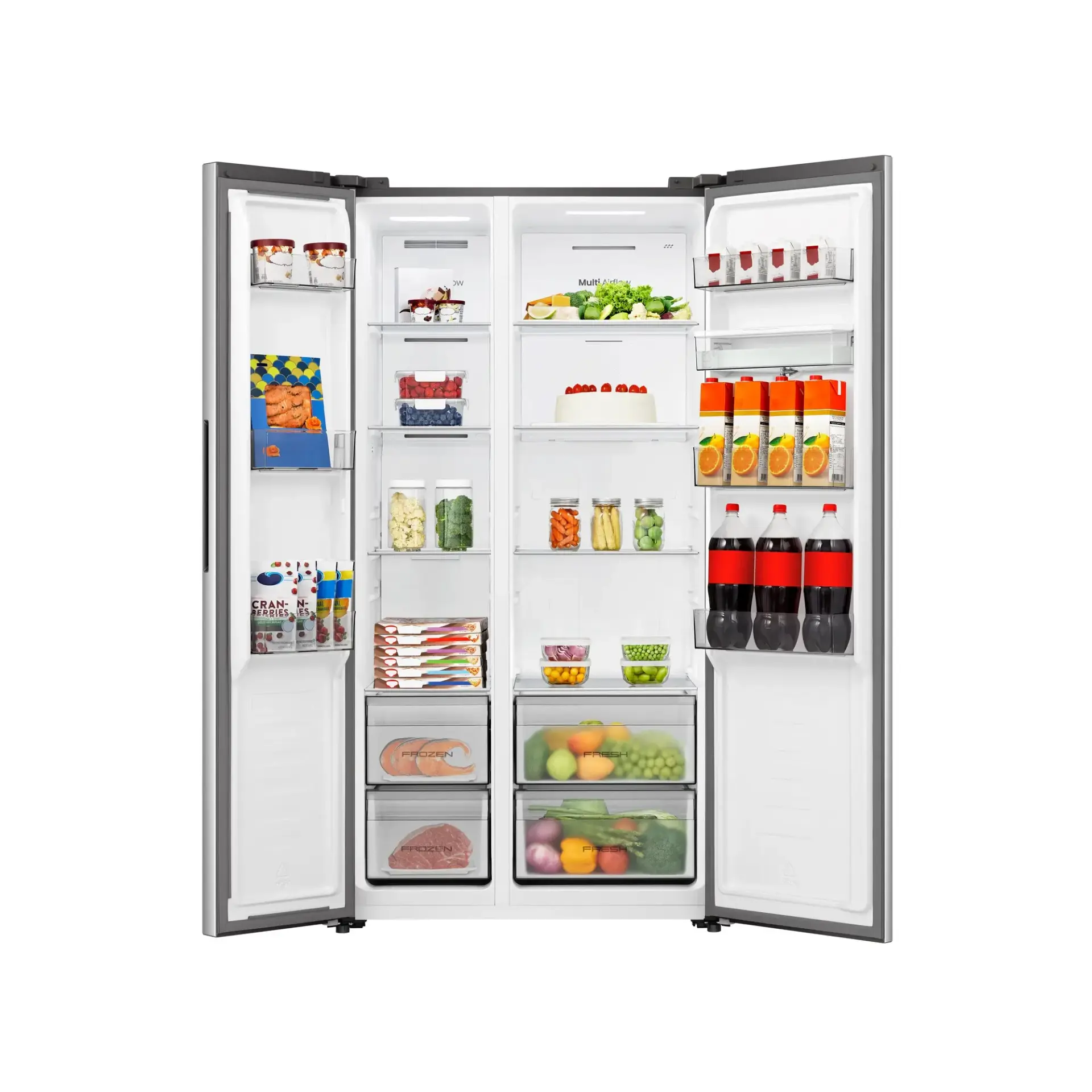 529L Flat door design Big capacity Inverter Compressor water dispenser Total no frost Precise temperature Control Soft LED light Super cool function Super freeze function Low noise Adjustable leg